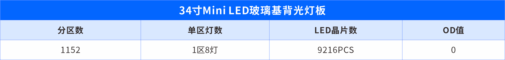 直下型大尺寸的玻璃基背光灯板,该Mini LED背光灯板仅用来作为34寸液晶面板背光模组,应用于34寸显示器产品。