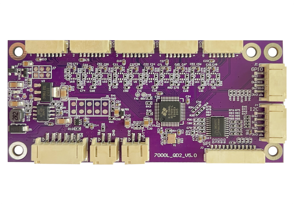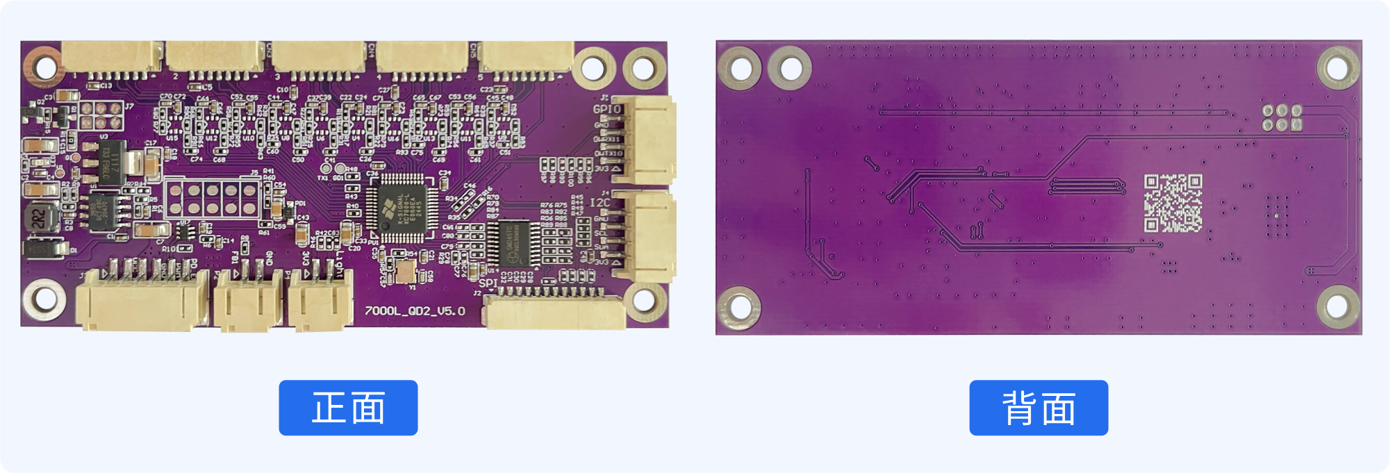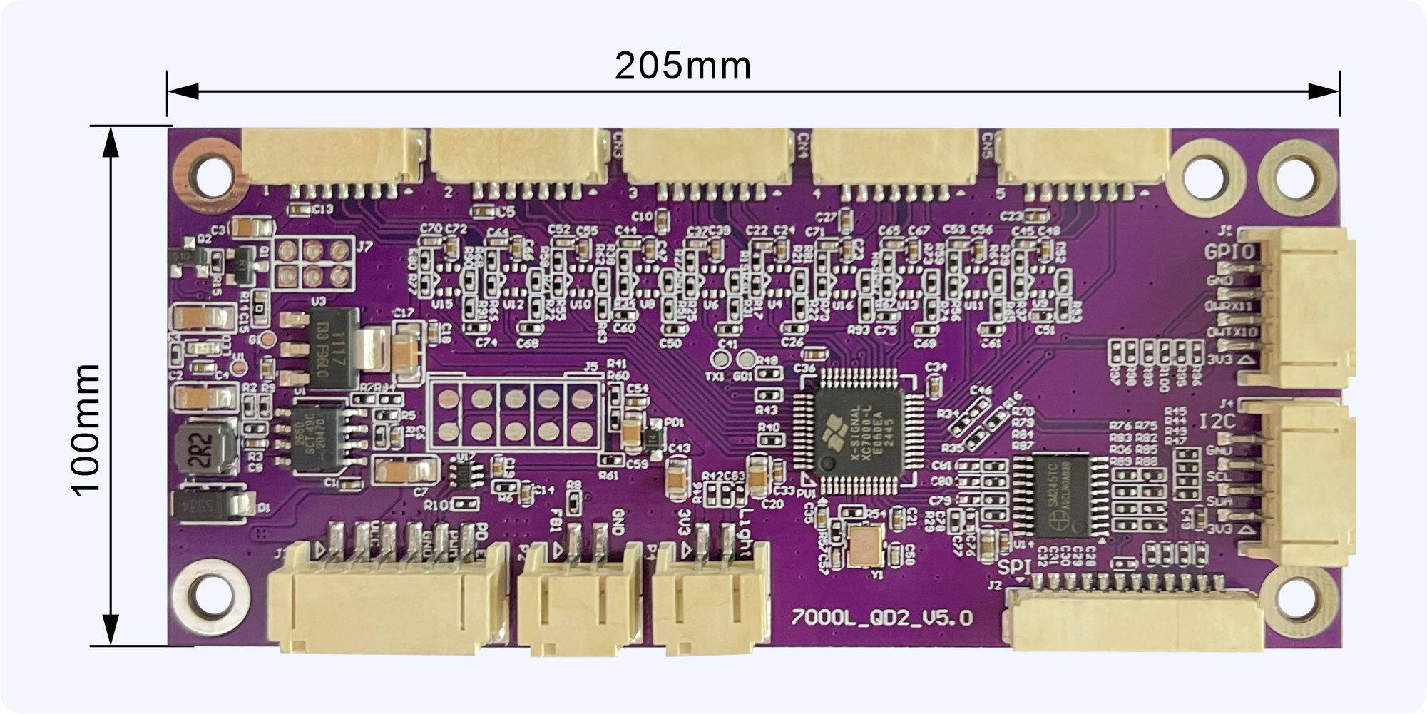 A7000L_QD2_V5.0是一款专为AM背光应用设计的迷你LED背光控制PCBA。设备从上层S0C芯片接收分区亮度信息,解析后生成分布式亮度数据,通过专有的单线通信(OWC)协议接口及一些必要的控制命令去控制AM背光驱动芯片。