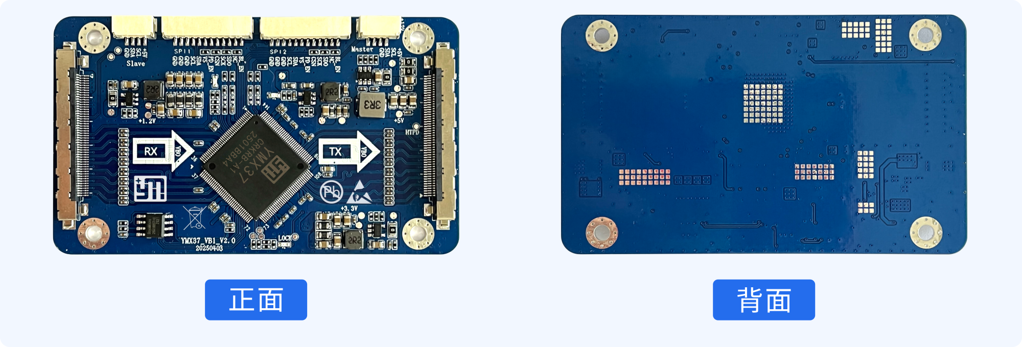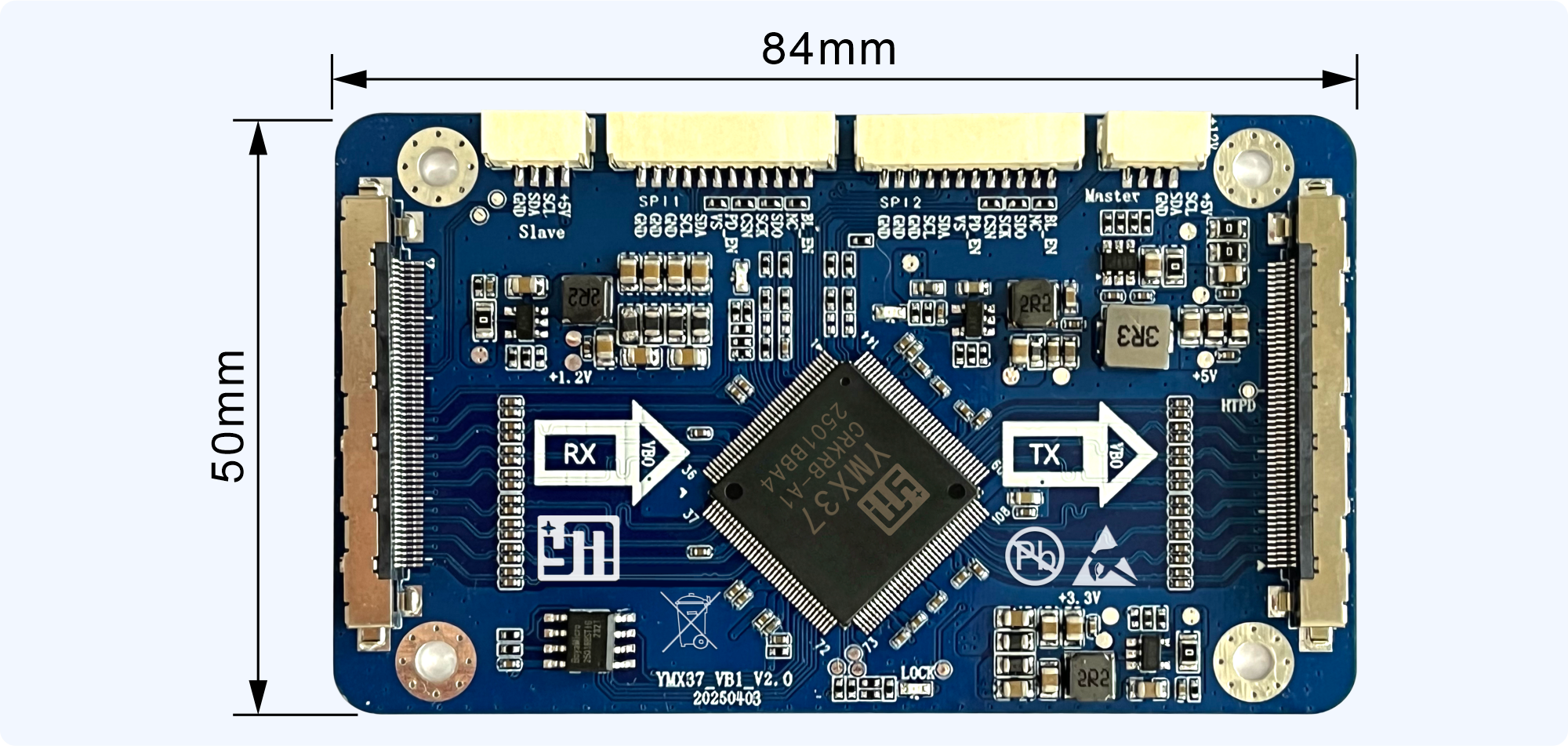 YMX37_VB1_V2.0是一款具备局部调光算法的板卡,同时也是一款4K2K@144Hz时序控制器,其拥有16通道Vx1 RX接收器输入接口以及24对差分发射器,用于USIT/ISP/CMP点对点接口。YMX37_VB1_V2.0支持 4K(3840x2160)@144Hz 以及高达 5120x2160@60Hz的分辨率,并具备LDC、De-Mura、WVA、OverDrive、LOD等功能。