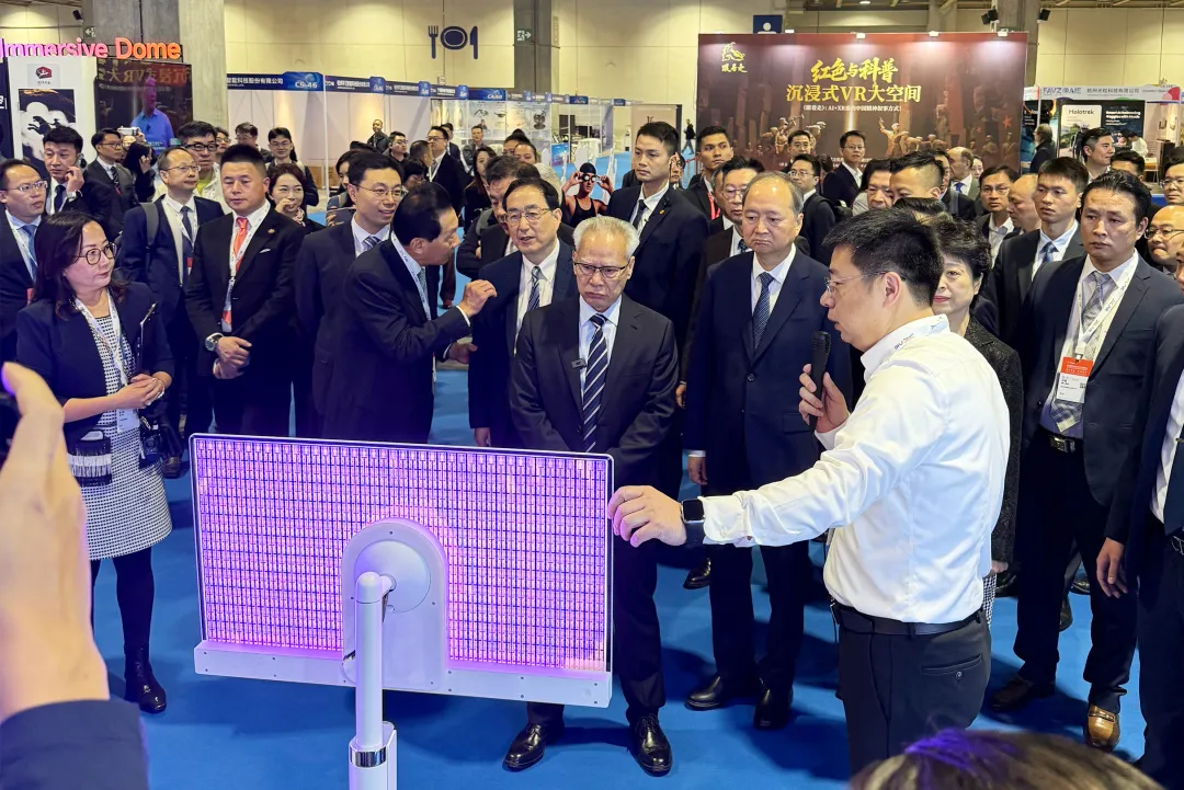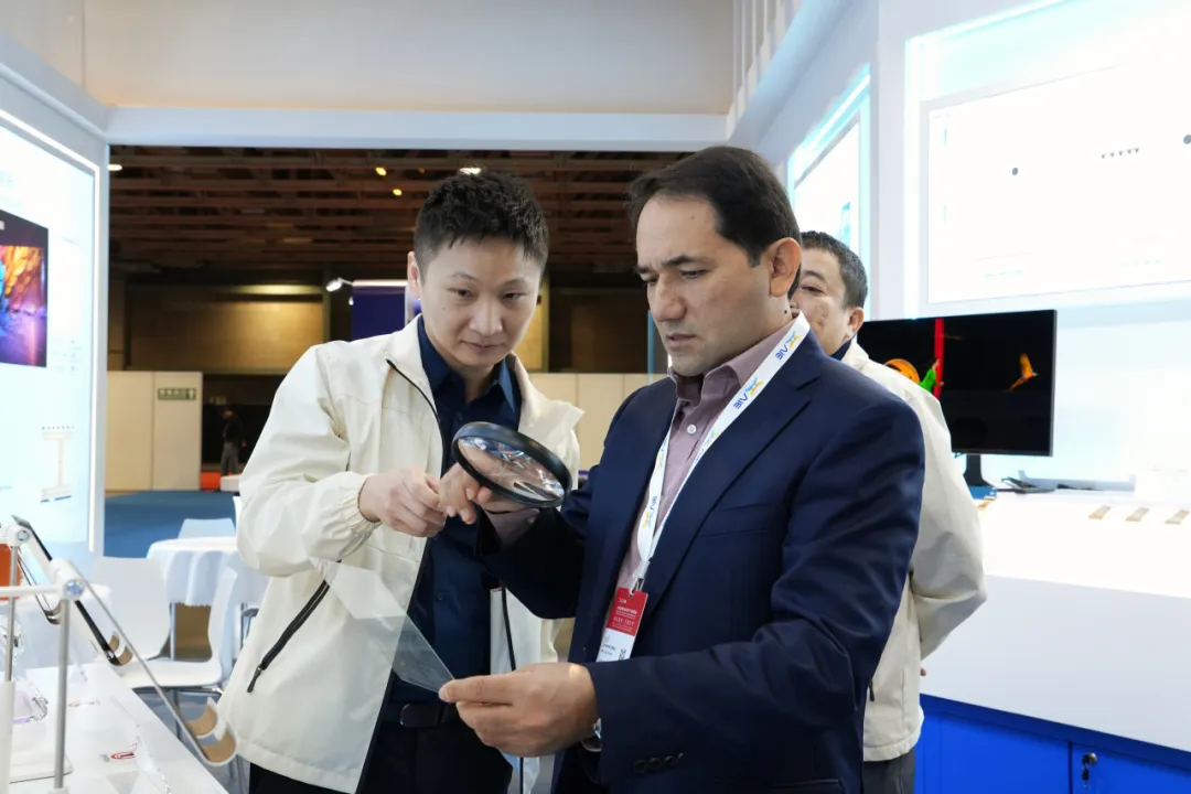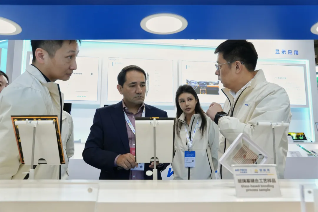 展会期间,澳门特别行政区行政长官岑浩辉,中央人民政府驻澳门特别行政区联络办公室主任郑新聪,广东省委常委、统战部部长王曦,中国电子协会会长王宁等嘉宾莅临沃格展台参观指导。 与此同时,沃格也受到了国际伙伴的重点关注,公司展台及展品获得了国际各界代表、买家团的高频次访问,他们对沃格玻璃基技术表达出浓厚兴趣并进行了深度技术交流。沃格集团董事长易伟华向莅临沃格展台的海内外嘉宾详细介绍了沃格玻璃基与新型材料最新研究成果与产业化进展。 乌兹别克斯坦电工电子工业管理局及电气与电子工业管理协会主席尤努索夫莅临沃格展台 作为全球目前极少拥有GCP(玻璃电路板)全制程工艺能力和制备装备的公司,沃格GCP(玻璃电路板)技术在多个领域分别取得不同阶段的进展,充分验证了玻璃电路板巨大的未来潜力。公司部分行业应用成果获得参会专家高度好评,及诸多海内外客户的大力赞赏。 在首展的新品方面,沃格光电带来了数款行业首创的GCP(玻璃电路板)新品,充分展示了业内领先的TGV工艺能力。GCP(玻璃电路板)产品可广泛应用于Micro LED半导体新型显示、5G/6G通信、光模块CPO封装、微流控生物芯片、AI算力芯片封装等领域。目前在各领域均与各自行业头部企业在联合开发中。与此同时,公司首次展出的公司研究院多年研发的、应用于航天卫星柔性太阳翼的CPI薄膜,已实现小批量交付并在轨运行。 凭借卓越表现,沃格推出的32寸臻爱闺蜜机荣获2025年亚洲电子信息产业产品创新奖“金鼎奖”。 成立15年来,沃格光电在保持玻璃精加工、光学器件等传统优势业务稳健增长的基础上,积极布局玻璃基Mini/Micro LED、先进封装、CPO及射频器件、航天卫星CPI薄膜等重点新兴产业,形成了“传统业务提供稳定现金流、新兴业务塑造增长新引擎”的良性发展格局。