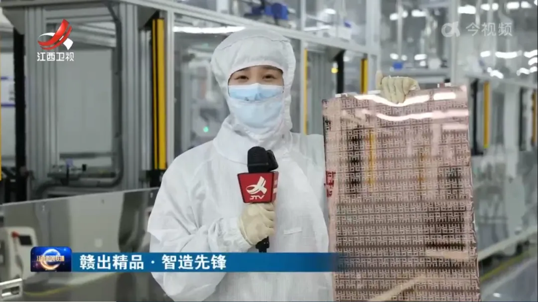节目中,江西卫视记者身着全套净化服,“全副武装”地跟随工作人员深入探访沃格光电全资子公司江西德虹的智能化产线,亲身体验和参观了沃格光电玻璃基板的多个生产制造环节。对一张不足1毫米厚的透明玻璃板摇身一变,成为布满精密线路的玻璃电路板,记者表达了诸多好奇与惊讶。记者也通过他们的镜头和采访对话,一步步揭开沃格光电玻璃基板研发攻关和生产环节的神秘面纱。