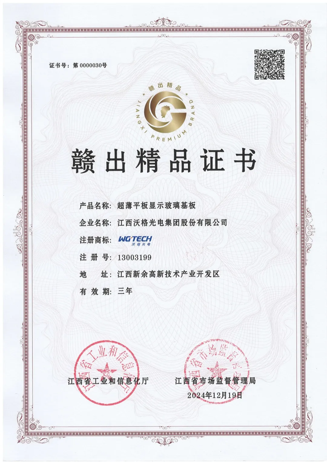 作为江西省通过首届“赣出精品”复核的企业之一,沃格光电凭借自主研发的超薄平板显示玻璃基板,获得了江西省工业和信息化厅、江西省市场监督管理局及评审专家组的一致认可与好评。