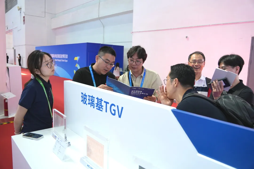 展会期间,江西省副省长夏文勇专程来到沃格展台调研,充分肯定其“以核心技术推动产业链升级”的发展路径,鼓励企业继续发挥自身技术创新优势,助力江西电子信息产业强化优势内核,进一步占领世界产业高地。 链博效应:全球合作窗口再拓宽 链博会平台为沃格提供了链接海内外更多合作伙伴的窗口,通过链博会“链接”功能,公司的玻璃基产品与技术向欧美、日韩等市场潜在合作伙伴展示了更广阔的合作空间。 业内人士分析,沃格技术矩阵填补了传统PCB基板在超薄化、高精度领域的空白,其“玻璃基+Mini LED”方案或重塑显示产业格局,有望让庞大的LCD产业焕发新活力,重回高端应用领域。而沃格在今年6月份与AI芯片独角兽企业北极雄芯合作的全玻璃基多层堆叠的大算力AI芯片架构方案也为半导体先进封装带来研发创新的突破口。 诸多进展表明,沃格所推出的玻璃基精密线路板解决方案有望成为推动全球电子信息产业变革的新引擎,全球产业合作的机会也进一步拓宽。 未来展望:创新链与产业链的双向奔赴 随着链博会闭幕,玻璃基精密线路板的技术创新方向也得到更广范围的认可,这也将更加坚定沃格正在推进的玻璃基产业化布局。 在江西德虹,一期年产100万平方米的玻璃基背光产线已步入规模量产阶段,产能得到进一步释放。在湖北通格微,一期年产10万平方米的TGV玻璃产品线正稳步推进小批量试产,为海内外多个知名客户的产品验证提供多款样品。在成都沃格,AMOLED产品精加工的产品线正在加紧推进土建工程,力争提前量产。围绕玻璃基产能和技术的一系列布局,将进一步推动产业链上下游的协同创新。 本届链博会上,像沃格这样以技术为纽带、串联上下游的企业并非个例。从高通5G-A生态到江西锂电全极耳技术,全球产业链正加速向“创新驱动”转型。中国贸促会相关负责人表示,链博会已成为新技术、新模式的“孵化器”,未来将持续优化跨境合作机制,让更多“沃格式创新”走向世界舞台。